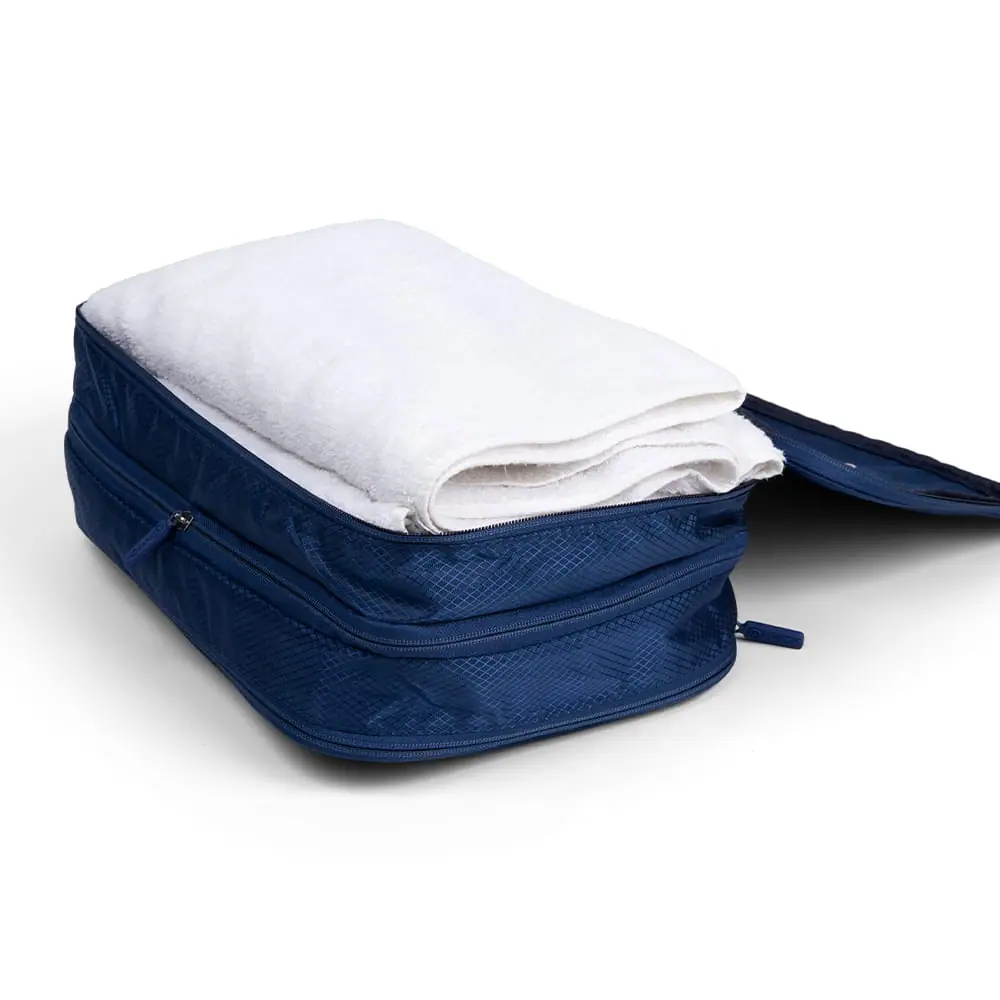 Have you been accused of being an over-packer? With the Miamica compression packing cube, you’ll be able to sneak in a few more items without anyone taking notice. From hassle-free travel to efficient home organization, this classic navy lightweight and tear-resistant packing cube can hold a lot. Upgrade your packing game and declutter your space with ease.